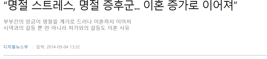또한 설과 추석 명절직후 이혼율이 증가한다는 통계또한 나와 있습니다.